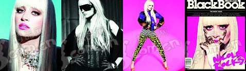 Nicole Ric hie為音樂期刊《BlackBook》拍攝的封面和時裝大片,完全是從Lady Gaga那里“借鑒”的靈感。