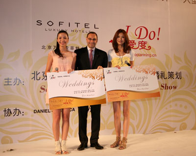 2009年6月13日下午14:00,北京萬達索菲特大飯店成功舉辦了第一屆婚禮展,近500位貴賓前來參加此次活動。其中包括確定的90對準新人。婚禮現場分為4個區域,包括了4個不同色彩的精致擺臺,環保的綠色系,通過其清新和健康也是現在年輕人所追求的生活狀態。充滿美麗夢想的粉紅夢幻系,為女孩們為實現其夢想打造的主題色彩;甜蜜的巧克力色系,表著溫暖,甜蜜和關心,這款不同于以往的傳統選擇給于新人所獨特的婚宴感受;喜慶的中國紅色系,在尊重傳統習慣上的基礎上,通過和其它元素的結合和創新,使得我們在傳統中看到時尚。這也是我們索菲特所倡導的中法文化融合的理念。 這幾款色彩將時尚,環保,經典,浪漫詮釋的淋漓盡致。