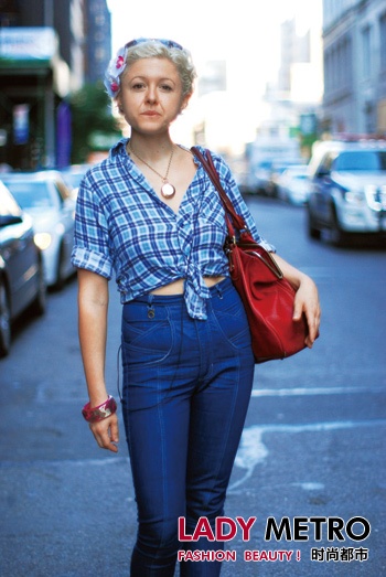 純正的靛藍色錐形高腰牛仔褲,搭配格子襯衫穿出上世紀50年代的鄉(xiāng)村COW BOY風格。