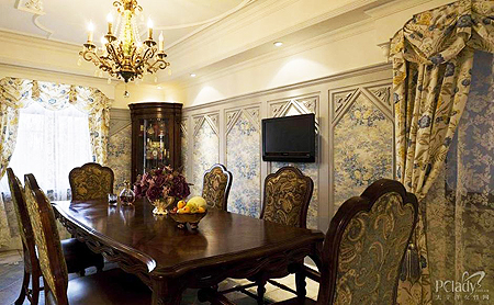 歐式風格講究典雅富麗,豪華精美,絨質軟裝是這一風格最常用的搭配元素。絨質材料能隨著整體居室色彩、流線的不同而展現出品位、觸感。在奢華大氣整體風格下,絨質會顯得平凡,但同樣是因為在這樣奢華大氣的氛圍下,除了絨質,其他材質搭配會顯得不協調。若是歐式風格居室要增添暖意,最好還是選擇絨質材料軟裝。