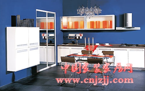 藍色的櫥柜與白色的餐具如大海和白沙般搭配得渾然天成,繁瑣的廚房家務也變得富有情趣。>博夫曼