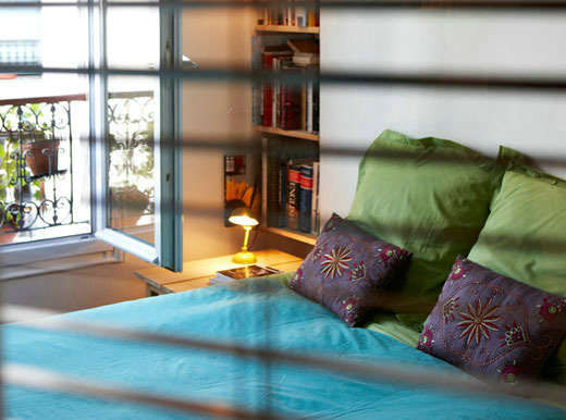 藍色和綠色相組合的這套床品,蔓延著簡潔和自然的氣息,色織提花的暗紫色靠包則富有動感,細節處的完善豐富了臥室的色彩層次感。