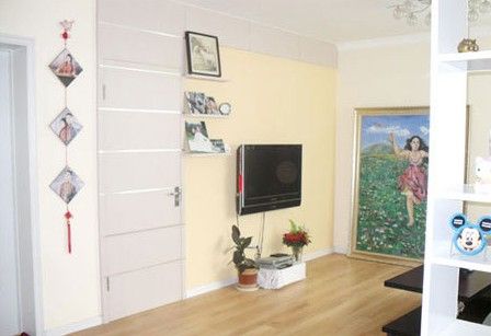 買完房子我們開始準備裝修工作, 對于我們80后的年輕人來說,經濟實惠確實是裝修的硬道理,本來剛剛畢業的我們就沒有什么存款。裝修就是“巧婦難為無米之炊”啦!既然沒有多少錢,那就只能“自己動手豐衣足食”了!但是我們爭議最大的就是太陽能和沙發,先來看個圖片吧從入戶門開始說起;上邊的進門就是客廳,門口做了一個博古架,這個博古架是我家小寶親自設計的,怎么樣很有柴吧!