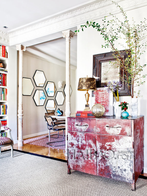Fernando Tapia設計過許多室內空間,布置起自己的房子來更是得心應手。主人在家中放置了從全球各地搜羅來的藝術品和古董家具,單看每一件都是美麗獨特,比如客廳中的斑駁木柜,沙發旁的不銹鋼框架單椅,然而Fernando Tapia卻能將它們完美流暢地搭配,沒有任何東西跳出來“搶戲”,整個氛圍舒適和諧,令人感到極度放松。