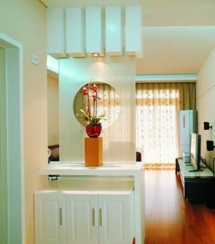 玄關不可高過主人身高,一米到兩米之間即可。下半部應以磚砌、厚木板等材質支撐,上半部可用玻璃柜,水族缸等通透不漏的材質,這樣,在控制氣流的同時還有聚財效果。