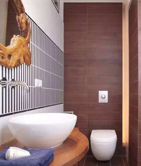 狹長的衛浴間坪數不大,但是小巧精致的設計讓空間很出彩。誰說小空間就不能用深色了!深色瓷磚搭配大理石臺盆更顯質感 家居 。長方形的水槽符合室內狹長設計,同時也能很好地節約室內空間,讓狹長空間看起來不覺得擁擠。