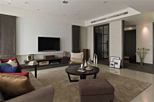 三米三的挑高、降板造型呈現(xiàn),輔以間接光源與水晶吊燈層次變化是設(shè)計師賦予的天花表情。而隔斷的效果就讓整個每個空間更加明確,也讓整個客廳更加的完整。