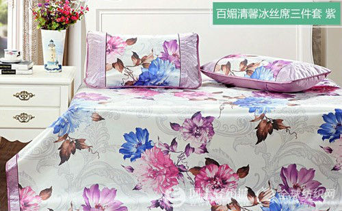 艾維家紡印花冰絲涼席(紫)