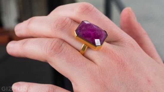 由于個(gè)頭較大,Ringly比一般的戒指更重一些,但做工非常精細(xì)。拋光的多面寶石(有半寶石和珍貴寶石多種選擇)和戒圈(18克拉鍍金或鍍銠黃銅)的雕琢非常精美和惹眼,如果把指示燈關(guān)掉,它就完全是一支普通的戒指。與此同時(shí),Ringly扎實(shí)的自身品質(zhì)也保證了它足以承受日常佩戴所產(chǎn)生的磨損。