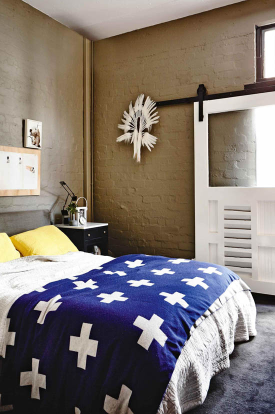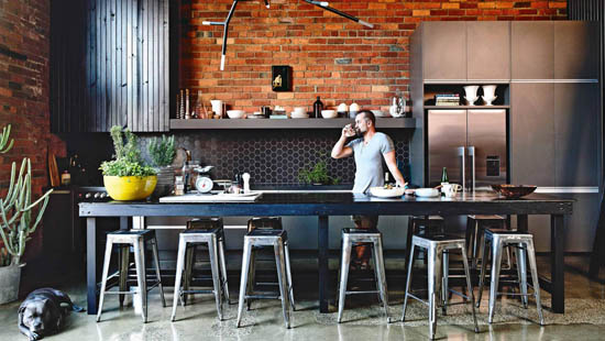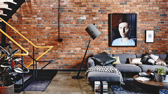 這所工業閣樓公寓昔日是一個啤酒廠,現在是健身教練Brett Murray、咖啡店老板Stuart McKenzie 以及室內設計師Simon Carver三個男人和一只狗的家。裸露的磚墻,深色的家具以及工業元素,打造出一個充滿男性化的風格,粗獷中帶有細膩的裝飾,讓這個家充滿魅力。