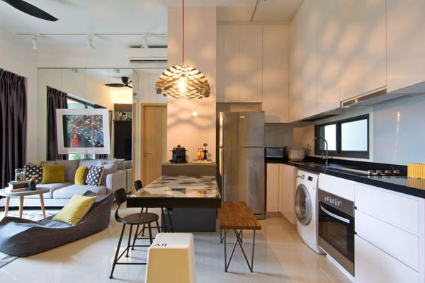 進入這間公寓,你就會立刻被這里的現代藝術氣息所吸引。大大的吊燈略顯夸張,但為整個空間定下了基調。