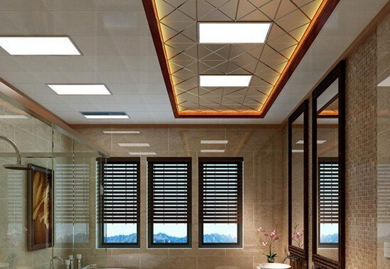 1.一般來說,選擇與瓷磚同一色系的扣板整體感會比較強。各種花色的板與白色的板搭配已經成為吊頂產品的主流搭配方案。