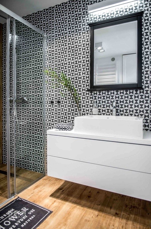 墻壁也并沒有保持白色,而是利用大的幾何色塊進(jìn)行裝飾。幾何,是這間公寓中常見的元素。