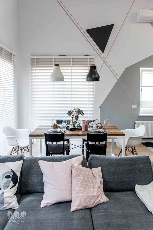 這處閣樓的設(shè)計來自波蘭的室內(nèi)設(shè)計公司,Shoko Design。 整個空間采用了黑灰粉三色的搭配。