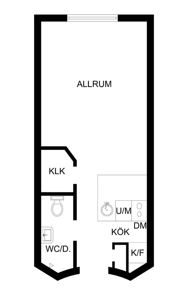 空間不大,更該好好做下規(guī)劃。這間小公寓僅有25平米1室,布局呈長方形。進(jìn)門便可以一眼看到窗戶。