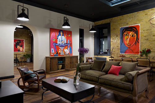 屋主為一個思維跳躍、充滿活力的年輕女孩,打造出專屬于年輕屋主的個性空間,以混搭的手法, 將老建筑保留的復古元素、現代質感的家具、硬朗的工業風以及夸張的裝飾畫進行混搭,并通過在整體上將色調統一,僅用小面積的亮色點綴手法,避免了視線范圍內的雜亂感。