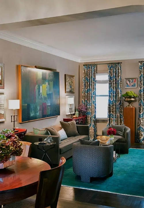 11、海洋:一塊看起來像海洋似的地毯可以被容納于任何房間,并能做出漂亮的加法。這個房間的這個搭配特別棒,因為它的出現就如一副藝術作品般躺在那,相當迷人。