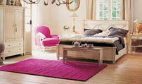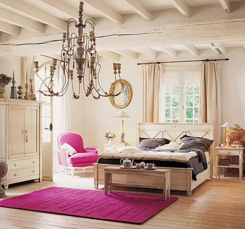 1、紫紅色:在這間奶油色般優雅的臥室中,這塊紫紅色的地毯呈現的跳躍度、呼應度和協調性剛剛好。若沒有它的陪襯,空間仍然是美麗的,但有了它,它可以讓你的軟裝搭配收獲無數點贊。