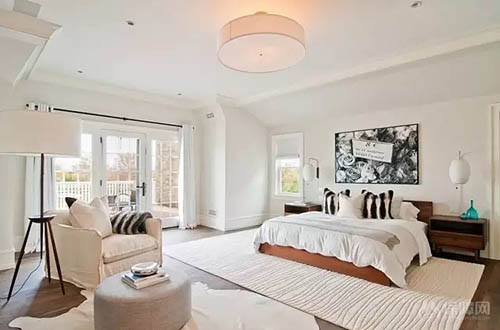 9、波浪形:奶油色的波浪形地毯使這個臥室比搭配前更有趣,更突出質感了。從整體色調再看到地板之上,你可以一覽無余看到房間內的所有,當然也包括了這個房間的特點。