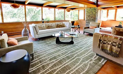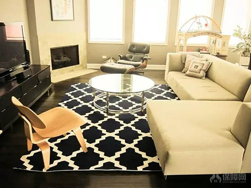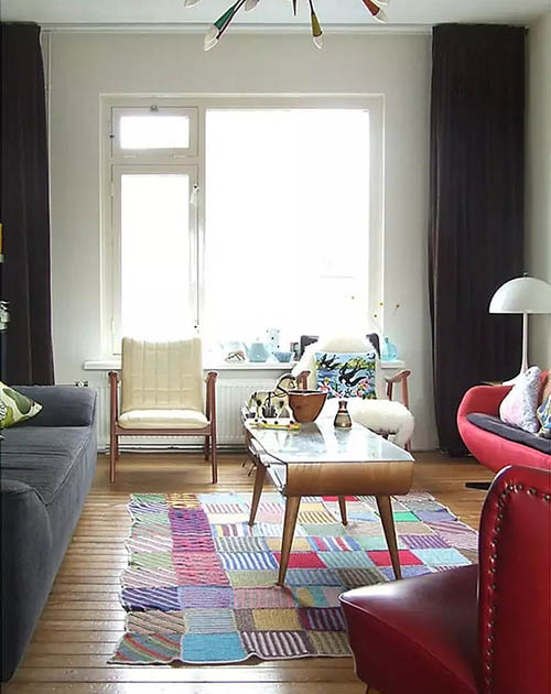 4、拼接:這類舒適的地毯特別讓人著迷,手工的制作讓客廳看起來更放松,不拘謹。
