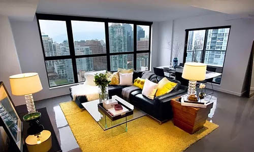 6、芥末黃:搭配這樣一套現代風格的客廳時,芥末黃可能并不是蹦入你腦海的第一個想法,但有時一款舒服的黃色地毯正是可以用來搭配中性時髦的客廳。不妨試試看!