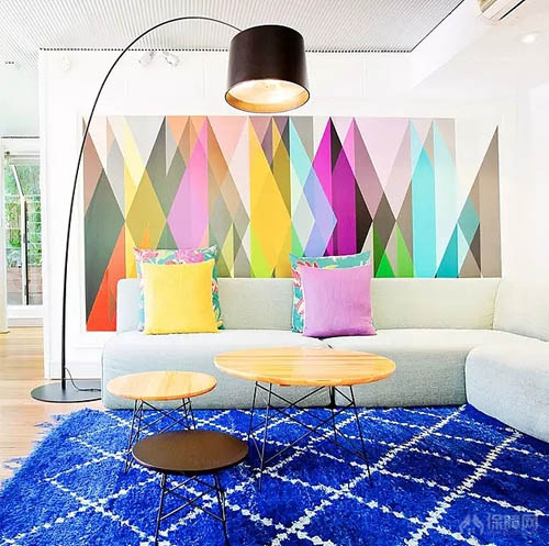 2、彩色:這種華麗摩登的地毯最適合將它特殊的氣質在現代風格的客廳中體現出來。顏色是驚人的,設計是時尚的,布局是完美的。