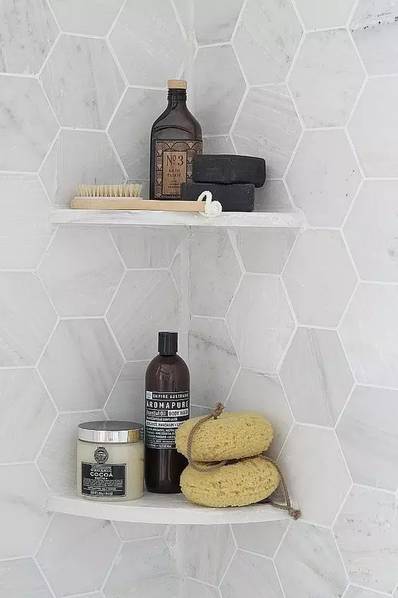 ▲浴室里的小隔板,放上潔面乳、洗發露和沐浴露,洗澡的時候不要太方便!