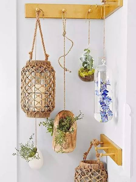 【小花園】▲一組掛鉤,幾股麻繩,把盆栽吊在角落里,既美觀又能凈化空氣~