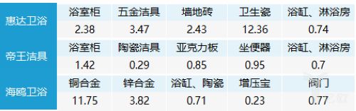 從上表中可以看到,上市企業衛浴潔具的業務結構并沒有發生很大的變化,依然圍繞著衛生間這個功能區間內做產品,業務從衛浴潔具向吊頂、陶瓷做延伸。