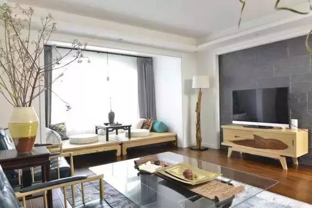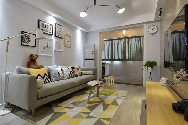 2、將客廳和陽臺打通,做個(gè)收納柜,放張休閑茶幾等等,將陽臺的空間充分利用起來,絕對比晾衣服好看一百倍。