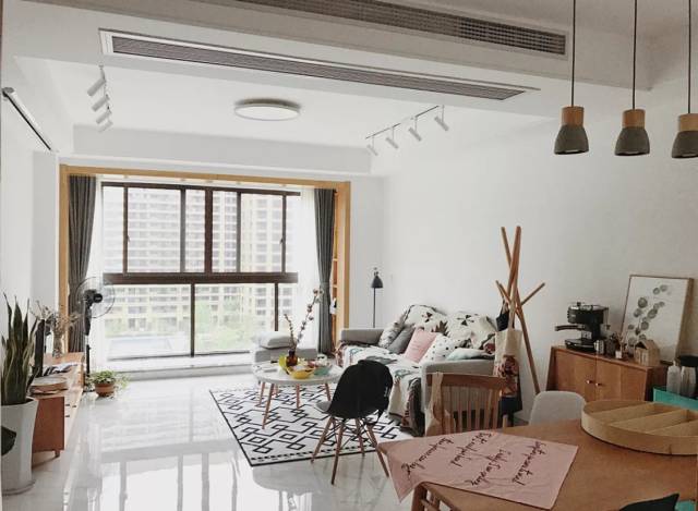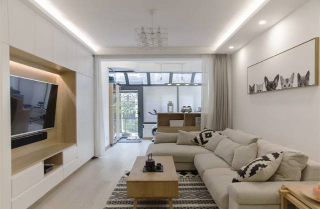 在很多戶型中,客廳會連著陽臺,但很多人都會在客廳與陽臺之間加上玻璃推拉門,如果玻璃清理不干凈,看起來就格外礙眼,而且現(xiàn)在陽臺基本都封起來了,保溫安全之類的問題都不需要擔(dān)心,所以在設(shè)計(jì)時(shí),保留兩塊空間的貫通性,看起來就會特別敞亮。