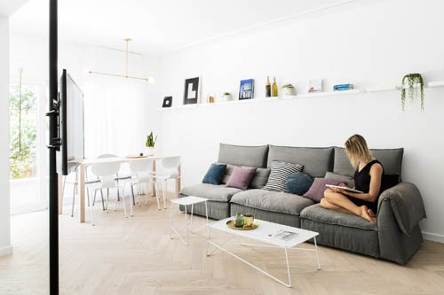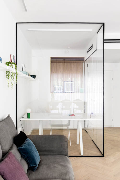 這間位于以色列特拉維夫的包豪斯公寓當中,淺色和玻璃墻共同為室內創造出額外空間的幻覺。公寓由Studio 6b設計學院的建筑師Amir Navon和室內設計師Maayan Zusman一起改造而成。