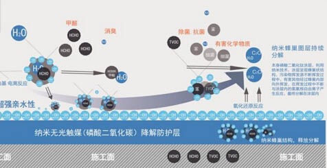 2002年,日本大阪市立工業研究所和大阪府立產業技術綜合研究所及日本YOO株式會社聯合研究發明了光觸媒的升級替代品——無光觸媒(納米級磷酸二氧化鈦)。目前,濟南天空湛藍節能環保服務有限公司成功攻破該技術成為國內首家無光觸媒技術領導者,并在此基礎上進行了多次升級,突破了光照限制,無光照條件下也能發揮作用,做到24小時不間斷空氣凈化。無光觸媒具有強烈的吸附性,利用納米粒子的電位轉移特性能產生高能量的異位反應,在無光條件下便能產生催化反應(氧化還原反應),產生具有強氧化力的氫氧游離基,可氧化分解各種有機化合物,對甲醛、苯、氨、TVOC等具有很強的降解能力。而且經權威機構檢測,對人寵、植物、治理目標物體等無任何副作用,一次噴涂治理后,能在治理目標物體表面形成一層硬度達8H的納米微巢狀涂層,除醛效果可維持5年以上,真正做到了從源頭上根除甲醛污染。無光觸媒的應用無疑是室內空氣污染治理技術的又一次突破。