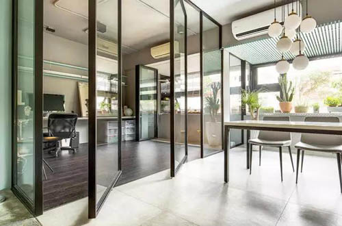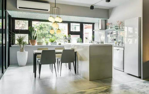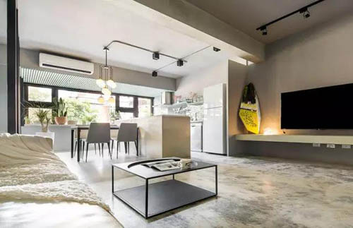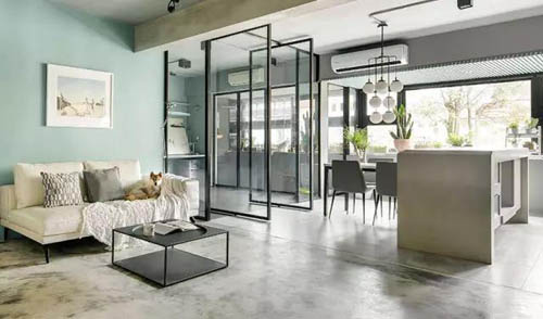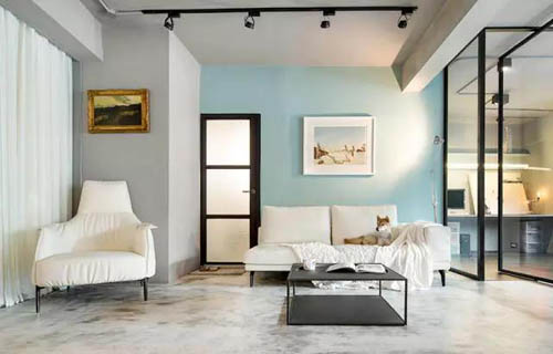這間簡約混搭點復古感的輕工業寵物宅位于臺北,屋主就是磨設計設計師為自己與先生還有四只心愛寵物量身訂做的家,運用大量玻璃元素突顯三面采光優勢,讓全屋滿溢明亮輕盈空氣感,仿佛踏進美國蘇活區文青公寓,室內沒有太多家具及裝飾品,以淺柔灰階定位,佐以清爽薄荷綠及暖白做層次渲染也借此延伸空間比例線條,展現遼闊視覺感,回到家就像漫步進無重力小宇宙般無壓自在。