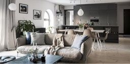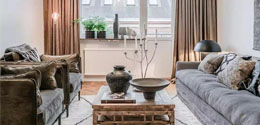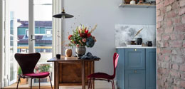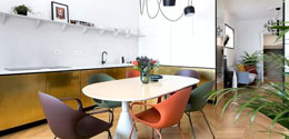 這間109平米(使用面積)公寓的歷史可以追溯到1930年,有著美麗的露臺,起居室的天花板高度為5.3米。廚房的藍色,在一些家具中加以重復,是精致設計裝飾的重要元素。