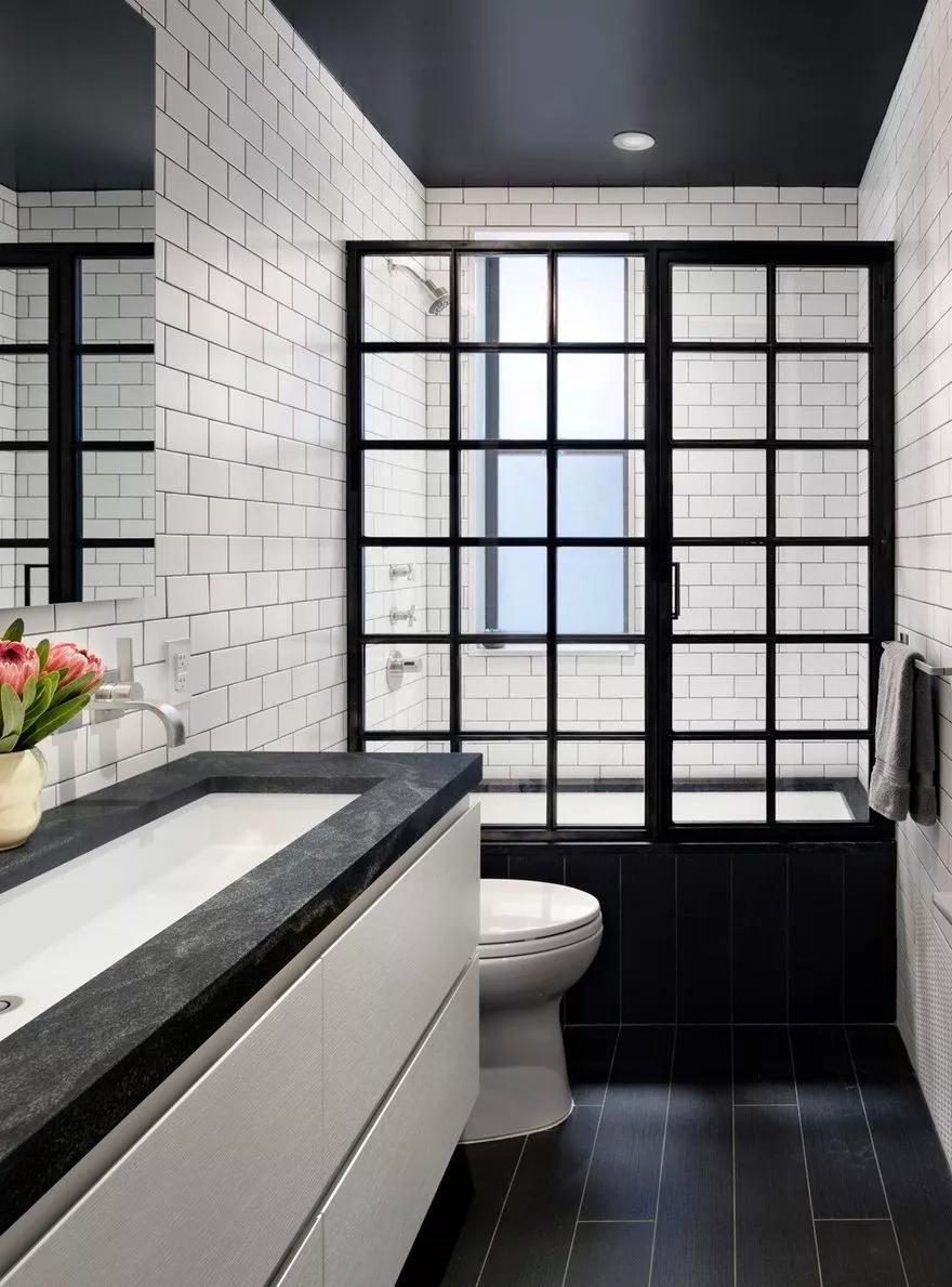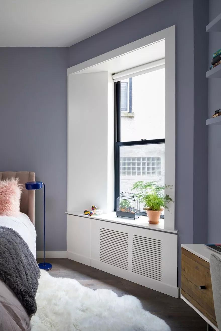 兒童浴室設有另一個鋼制和玻璃外殼,這次是浴缸/淋浴間,位于黑色瓷磚地板和天花板之間。大廳盡頭的小孩臥室涂有淡紫色和灰色的色調,還有一個角落的靠窗座位。