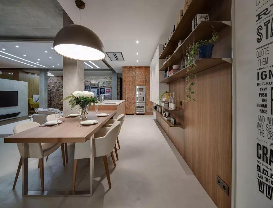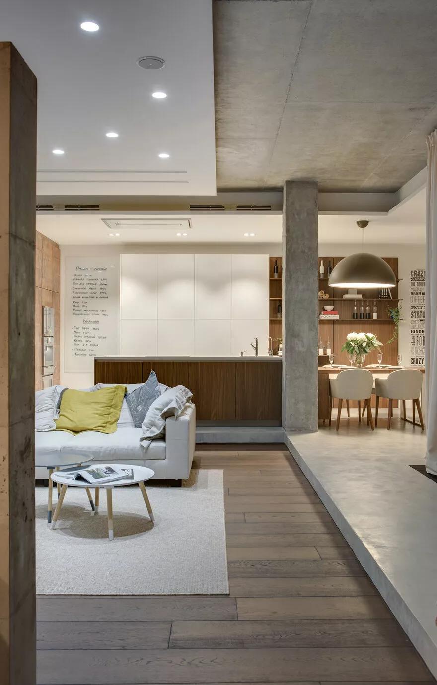 公寓的主人要求為自己和客人創造舒適的開放空間。建筑師使用最少的門或墻壁規劃出公寓,同時為所有公寓區域提供有效的解決方案,室內包括起居室,廚房,臥室,主人和客用浴室。這間公寓沒有任何大廳。從臥室到主浴室的過渡通過寬敞的衣柜。規劃使所有功能區域在同一時間保留了隱私。當客人住在一個區域時,他只會看到符合這里使用的東西。