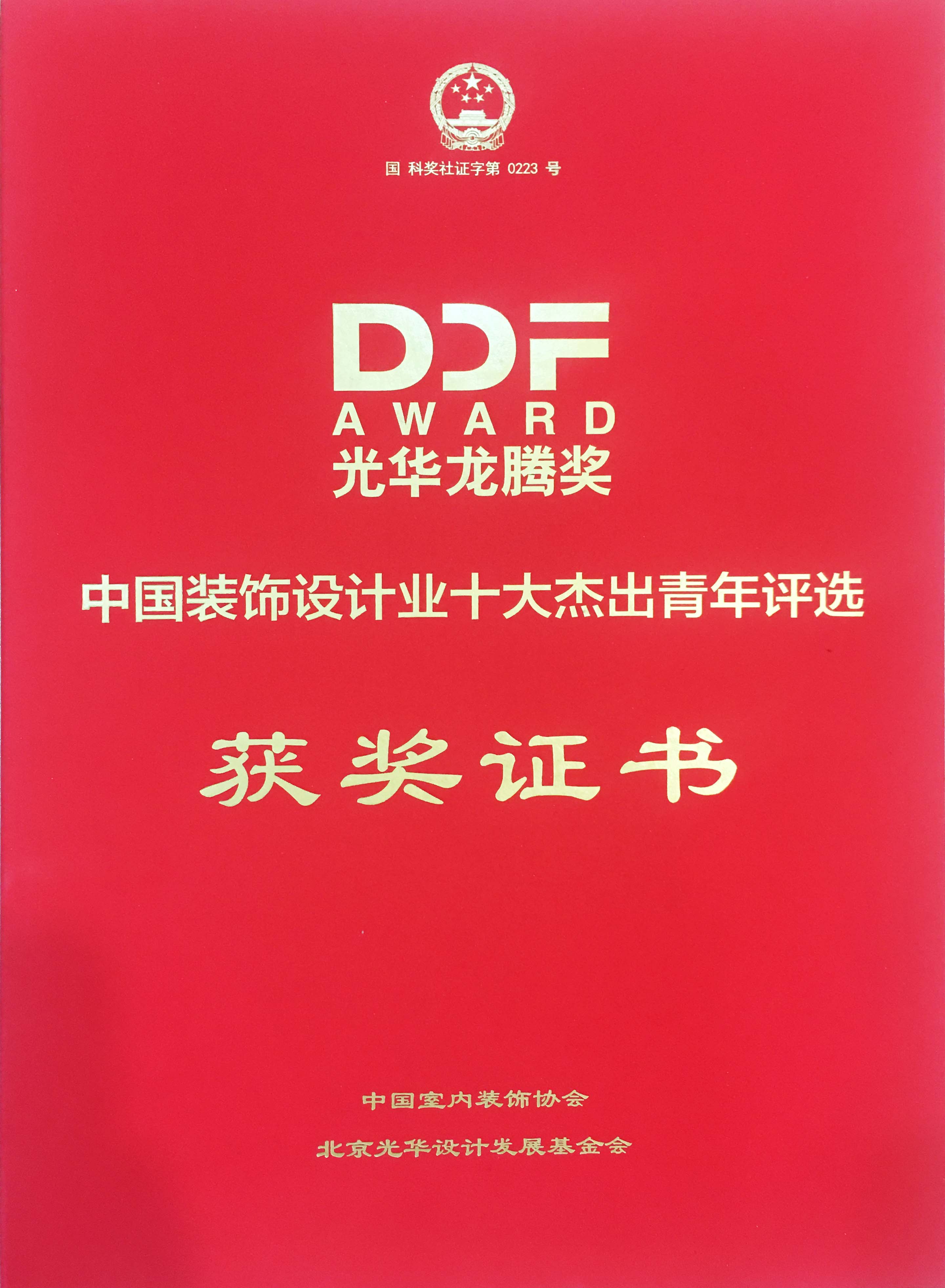 “光華龍騰獎·中國(裝飾)設(shè)計(jì)業(yè)十大杰出青年”是由中國室內(nèi)裝飾協(xié)會與北京光華設(shè)計(jì)發(fā)展基金會共同主辦,是為了表彰裝飾設(shè)計(jì)行業(yè)的青年才俊而設(shè)置的獎項(xiàng)。2011年10月經(jīng)國家科學(xué)技術(shù)部登記、國家科學(xué)技術(shù)獎勵辦公室批準(zhǔn)的社會力量設(shè)立科學(xué)技術(shù)獎-“光華龍騰設(shè)計(jì)創(chuàng)新獎”(國科編號0223,簡稱:光華龍騰獎)下設(shè)立子獎項(xiàng)“光華龍騰獎-中國裝飾設(shè)計(jì)業(yè)十大杰出青年”。光華龍騰獎是唯一一個(gè)評選設(shè)計(jì)人才的國家級獎項(xiàng)。