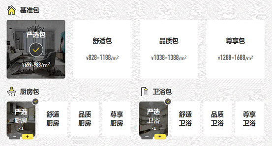全屋整裝4.0甄選套餐,道道精品。嚴選家:嚴選超值,好生活,很簡單;舒適家:簡約更實用,生活要舒適;品質家:突破,生活品質更進一步;尊享家:匠心定義奢華;老人房:營造良好的宜居的生活環境;兒童房:環保舒適的生活空間。