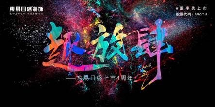 2018年,作為東易日盛上市的第四年,東易日盛開啟“‘趣放肆’上市四周年狂歡盛典,全國30家直營分公司,百余門店同期舉行,全平臺線上與線下聯動、各路品牌好友聯盟慶祝、線下超級品牌日為具有21年品牌積淀的東易日盛再賦能。