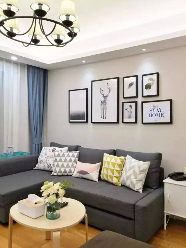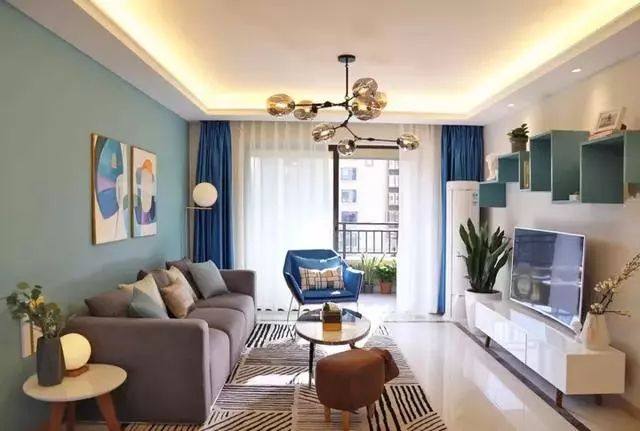 如果一種顏色無(wú)法滿足你,你可以考慮兩種顏色的窗簾,比如這款窗簾,藍(lán)色和棕色分別對(duì)應(yīng)墻面和沙發(fā),上下分層的設(shè)計(jì)也讓客廳更有層次感。