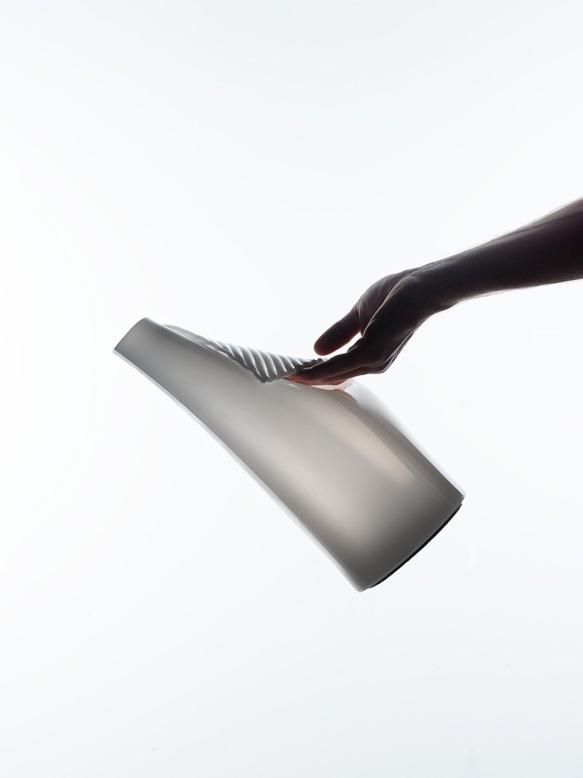 foscarini本次與 merino合作推出的燈具具有便攜性,可充電,同時采用無線設計。在設計方法方面,設計者選用現成工業元素作為參考,將亞克力管加熱至300攝氏度,重新塑形,再利用類似手提包的常見圖案進行封邊處理。