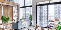 客廳跳色軟裝增添活潑氛圍,落地玻璃式陽臺賦予空間充足的光線。