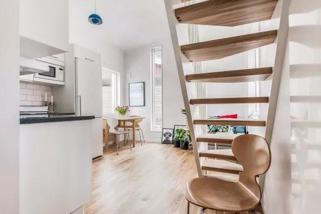 這間25平米的公寓,由于空間有限,干脆利用上層空間,做出夾層容納臥室,從而讓底層活動空間最大化。