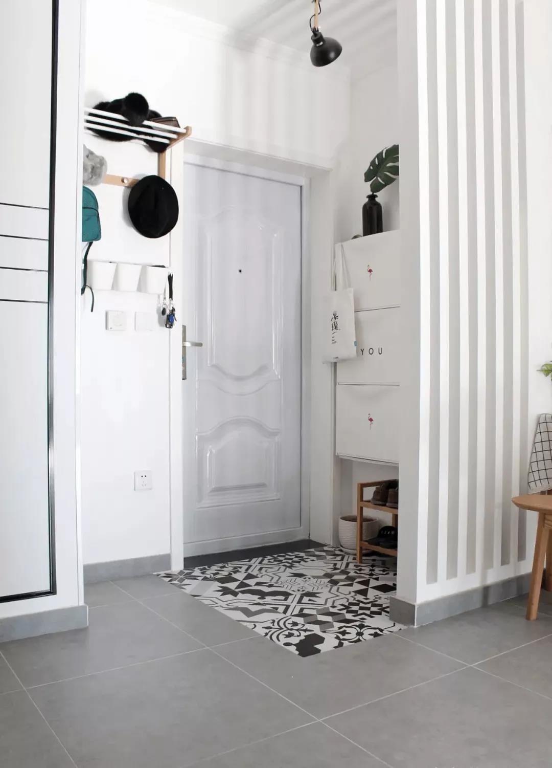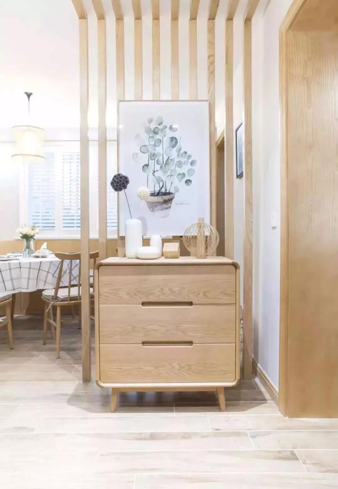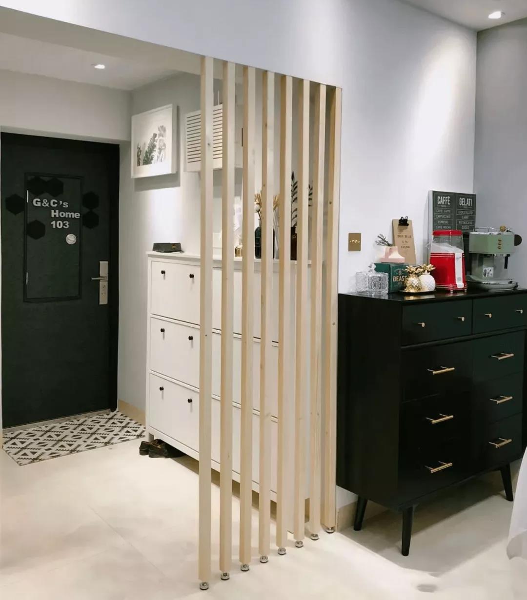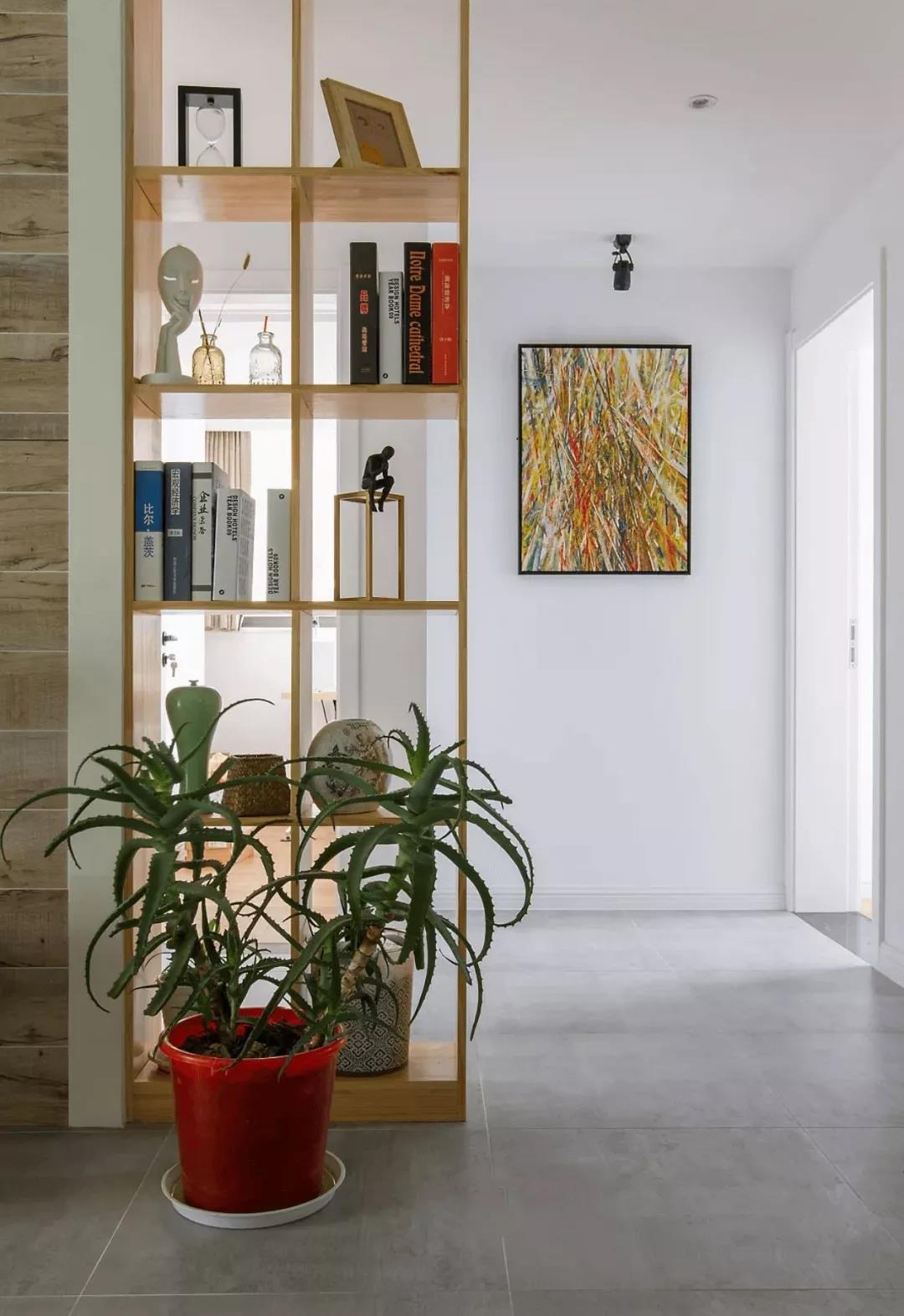 像上圖這種沒有獨(dú)立玄關(guān)的房子,在進(jìn)門處用木質(zhì)或玻璃隔斷一下,有很好的視覺上的遮擋一下,保護(hù)家里隱私。
