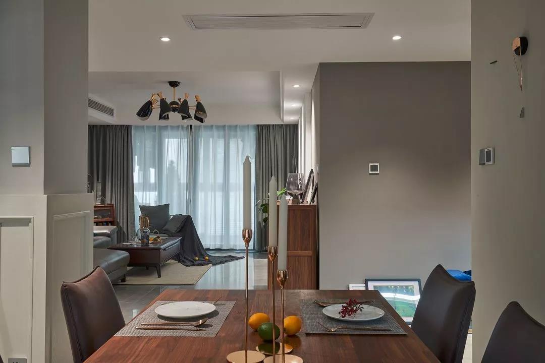 整個空間的調(diào)子都是黑白灰的調(diào)子,其中穿插一些胡桃色的木質(zhì)家具。那份寧靜與質(zhì)感體現(xiàn)空間的氣質(zhì)。
