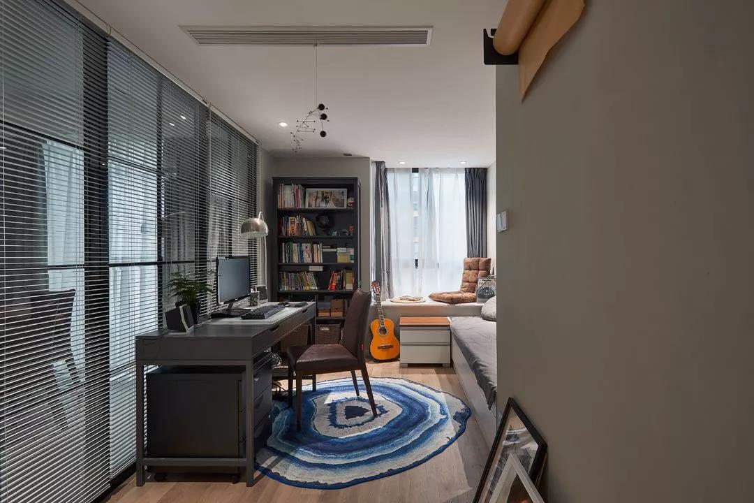 1、書房設(shè)計用玻璃隔斷,這樣客餐廳和書房互動性更好,視線更佳。