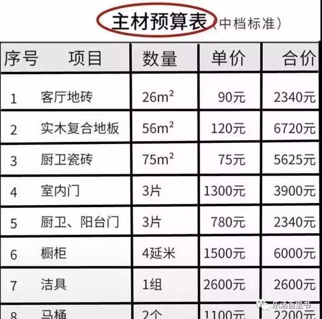 這是一套80平左右的新房用的裝修預算表,建議永久珍藏,自家裝修時拿來作參考!