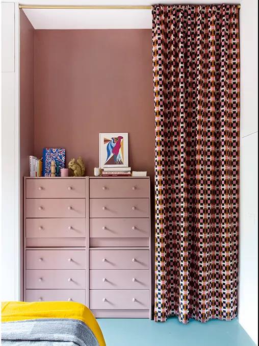 采用復古風格,充滿了開拓空間的想法,并利用色彩營造出時尚的風格,比如紫色的廚房,這是一種很不尋常的選擇。