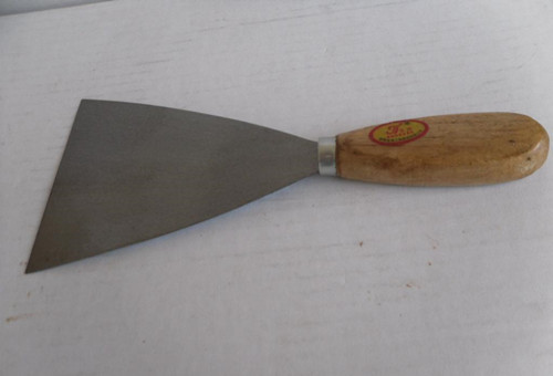 2. 刮膩子工具還有膩子刮刀和38mm以及63mm寬的油漆鏟刀,還有陰陽角器之類的。此外還有牛角刮刀,這種使用水牛的角制成的。使用時用大拇指和其它手指跨在刮刀的兩個面上,首先向下刮然后在向上刮,把膩子刮滿就好了。